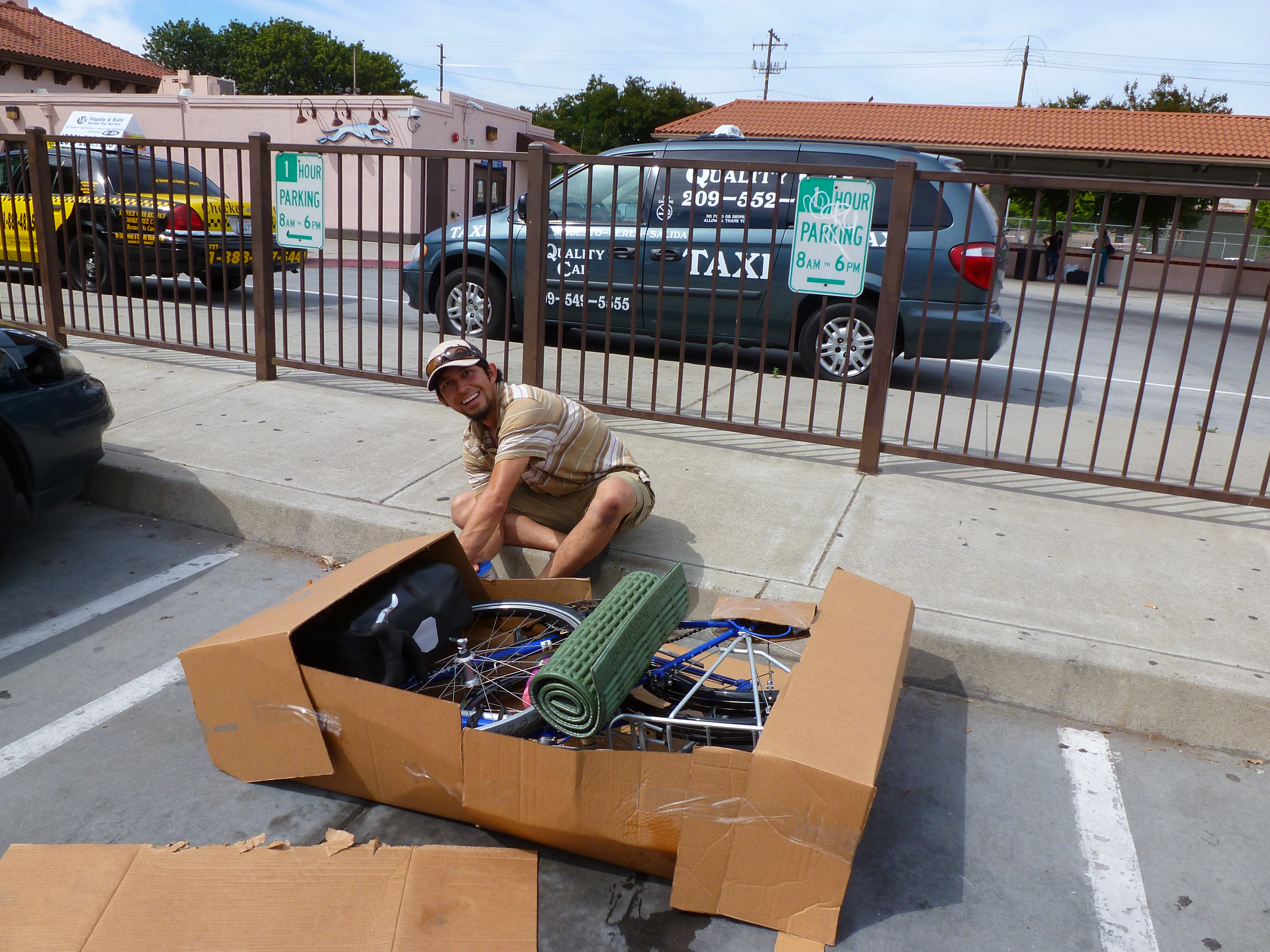 3. Make a mad dash to Modesto, 50 miles away. Drive around town trying to find a box big enough to package my touring bike and gear in.