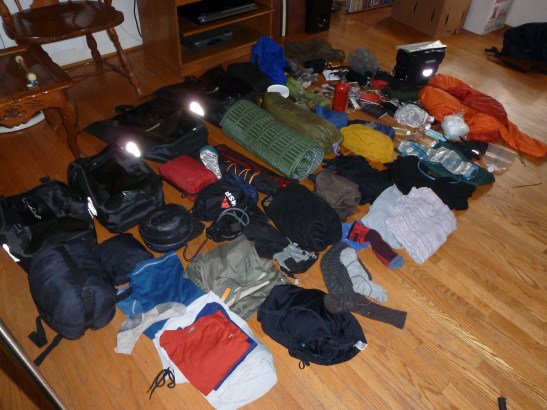 For those interested, here is a quick shot at my gear and food provisions for the first 10-12 days of my trip.