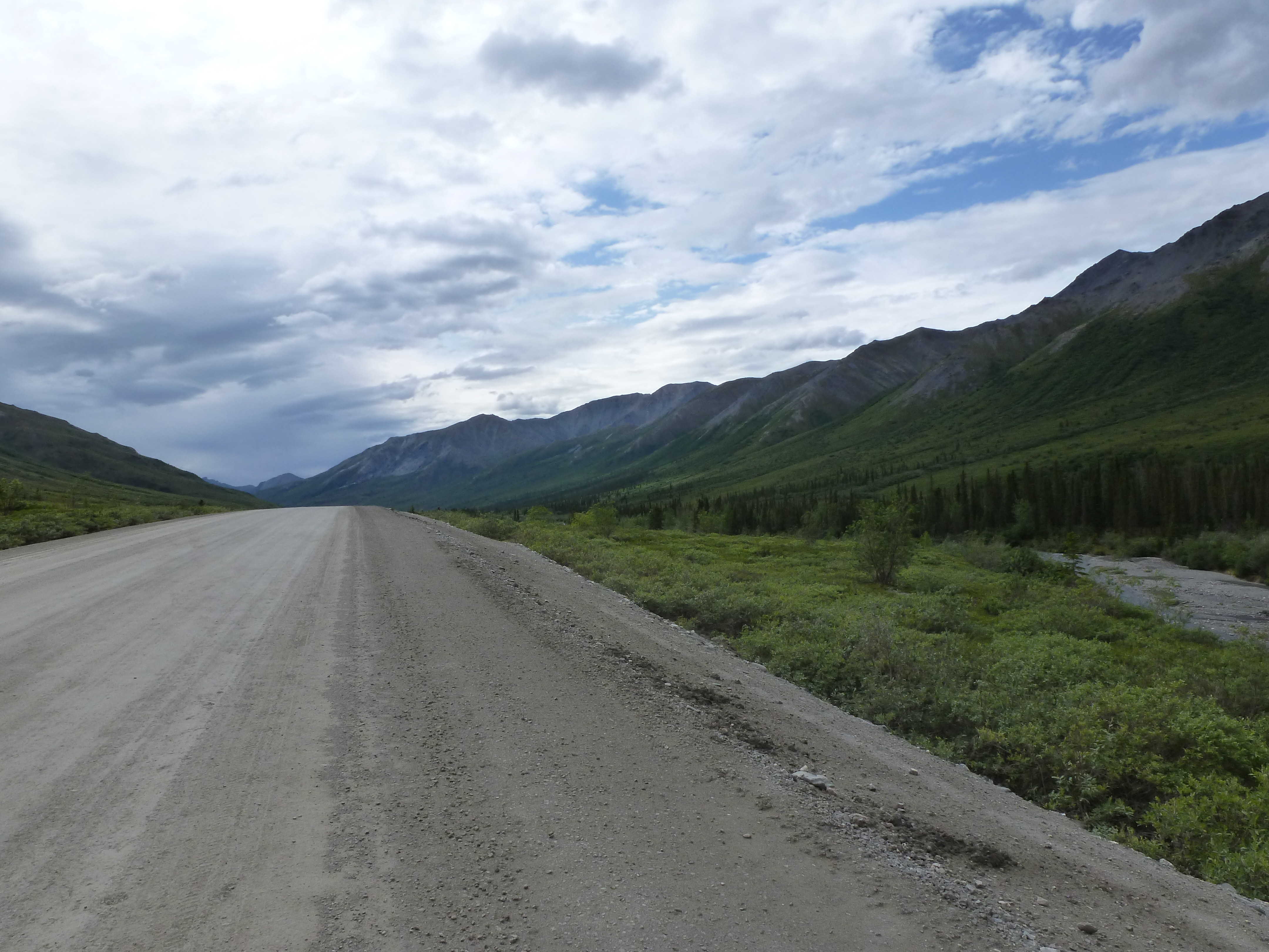 This leg of the tour was described to me by a passing cyclist also on the Dalton as the “PhD” of touring. While it was a far cry from all out misery, it definetely tested me in ways I have not been tested on a bike ever before. The riding itself was not bad on a day to day basis, if you were only doing that as a day ride. However the added effect of riding 55+ miles a day over dirt roads and constantly having to push your bike up massive hills really adds up. Add in non-stop daylight to wreck your sleep pattern and biking int he rain and you get a better idea of what it’s like. On top of that, add in the mental fatigue of having to find camp every night, pumping water from roadside puddles at times, cooking meals on a backpacking stove and having to worry about bears since I lost my bear spray on day 2!