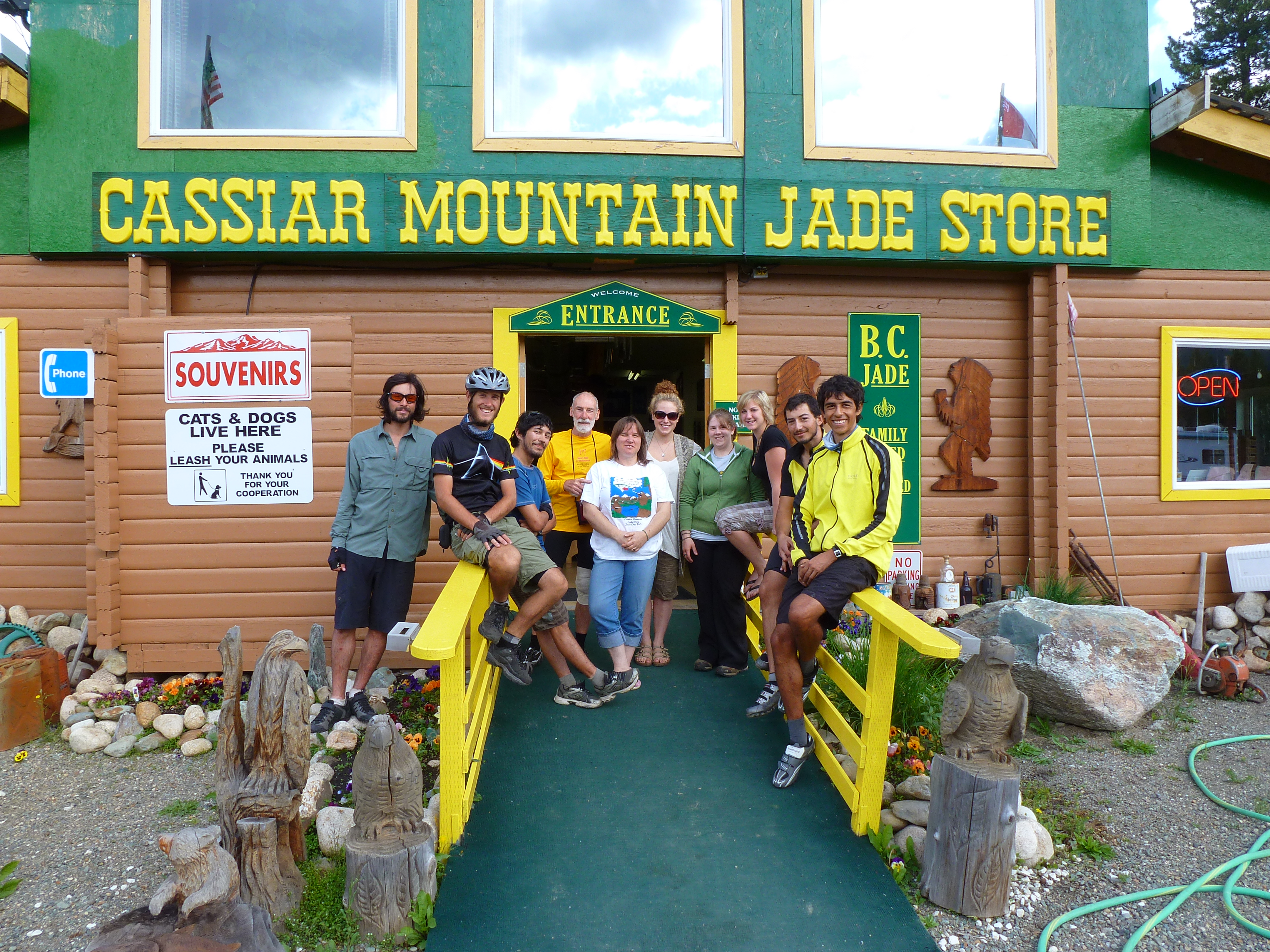 The lovely people of Cassiar Mountain Jade Store and the cyclists who would not leave!