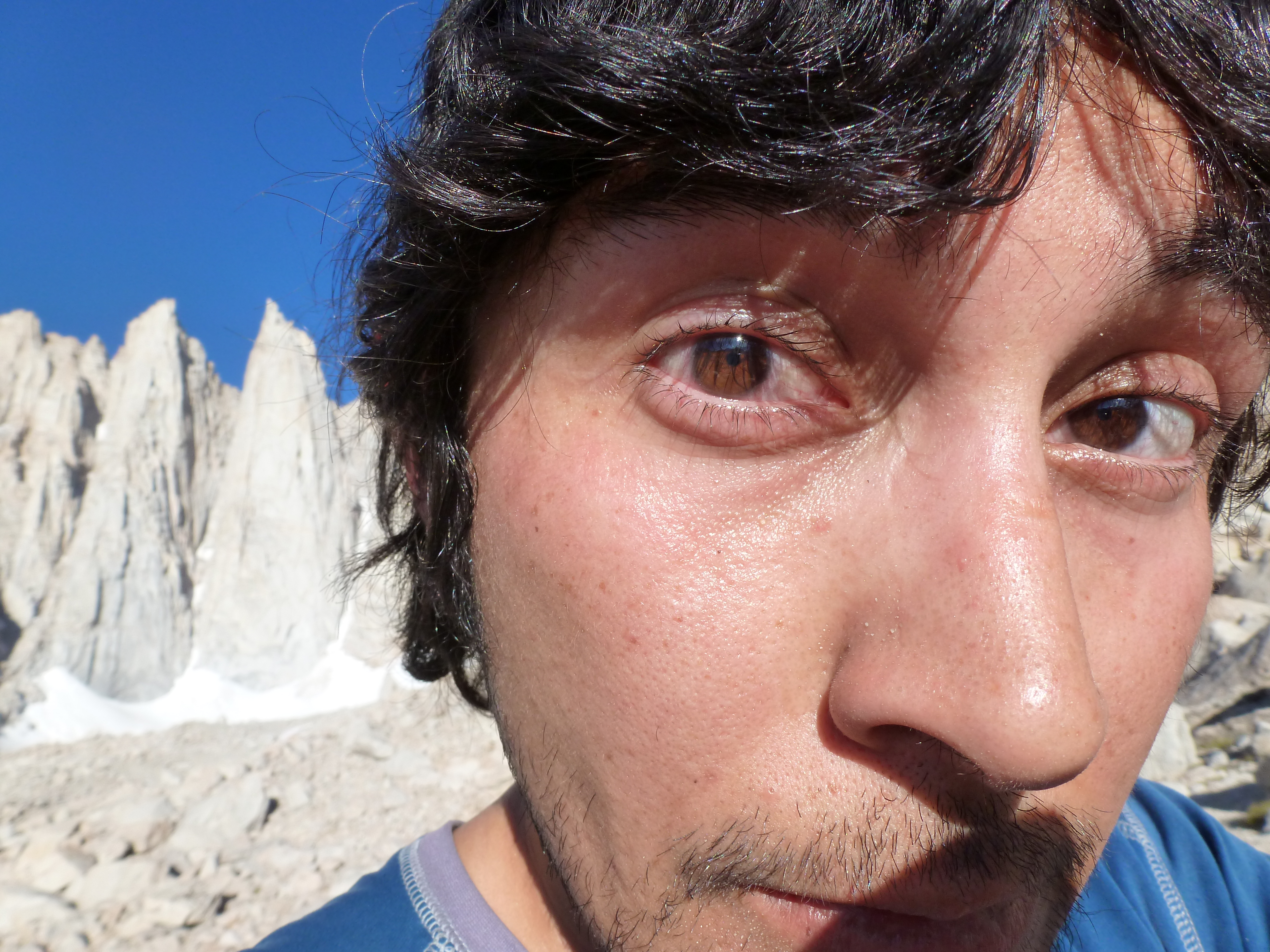 I see you. Keeler and Day Needle behind me and my pink eye.