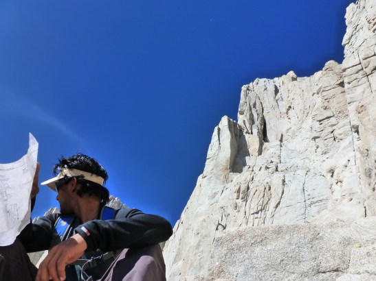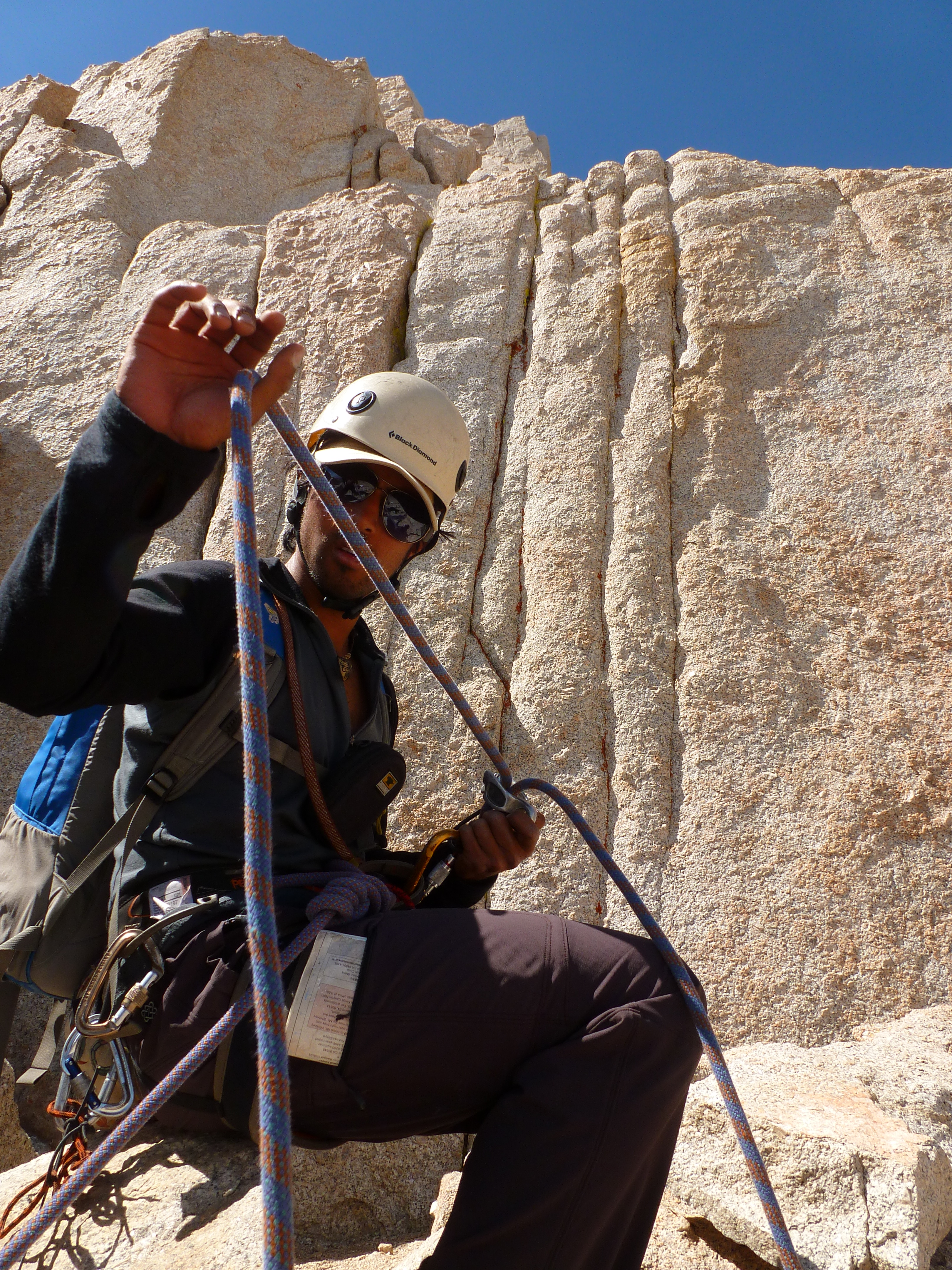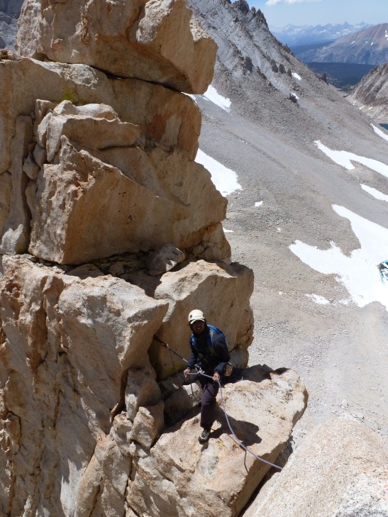 Japhy messing with ropes on the East Buttress of Mt. Whitney