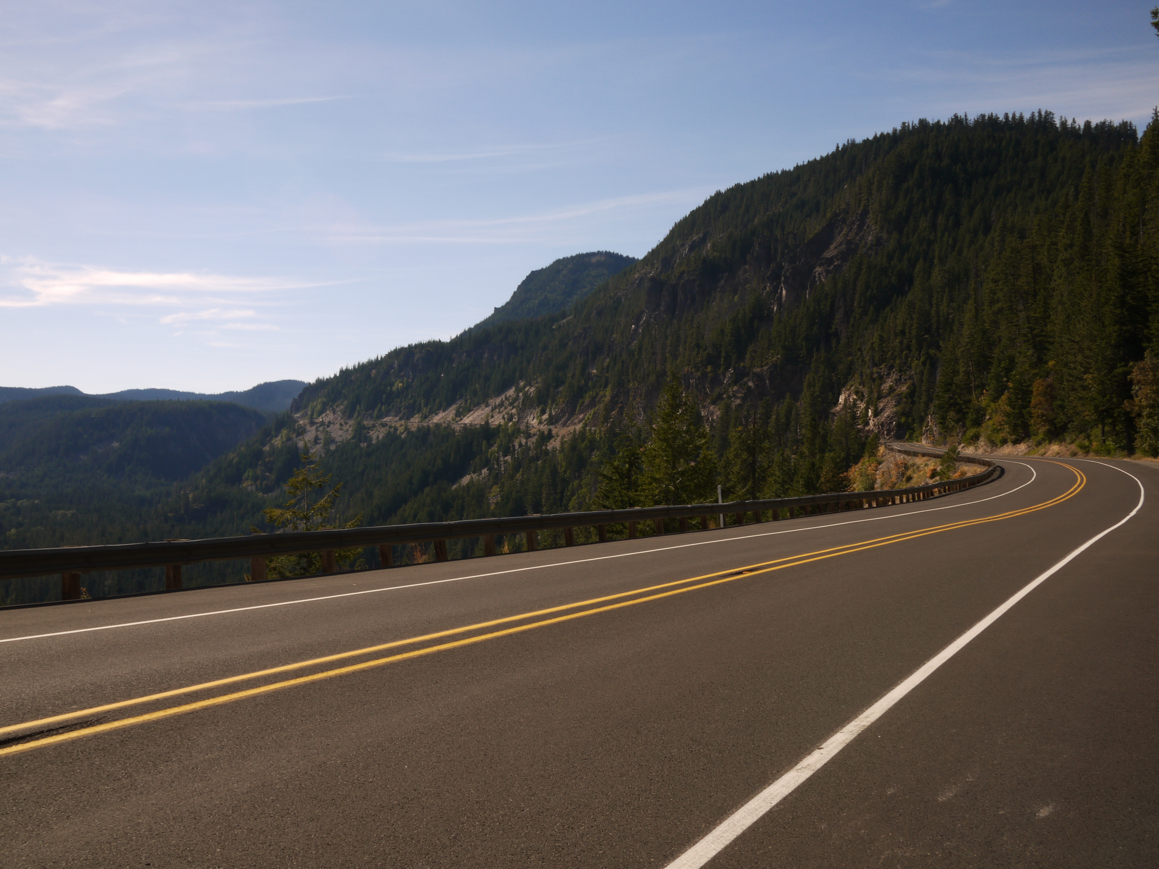 The route we have chosen, ACA’s Sierra Cascades Route, has us heading up and over a pass almost every single day which has afforded us some fantastic sights in the beautiful Cascades but also has proven to be a real chore. With names like Rainy(4,875′), Washington(5,477′), Blewitt(4,102′), Elk, White(4,500′) and Oldman they sound benign enough but all told they really do add up. At least we have ended every day thus far with a white knuckle descent down winding mountain roads watching out speedometers spit out scary speeds as we hurl our masses down the inclines with shit-eating grins on our faces.