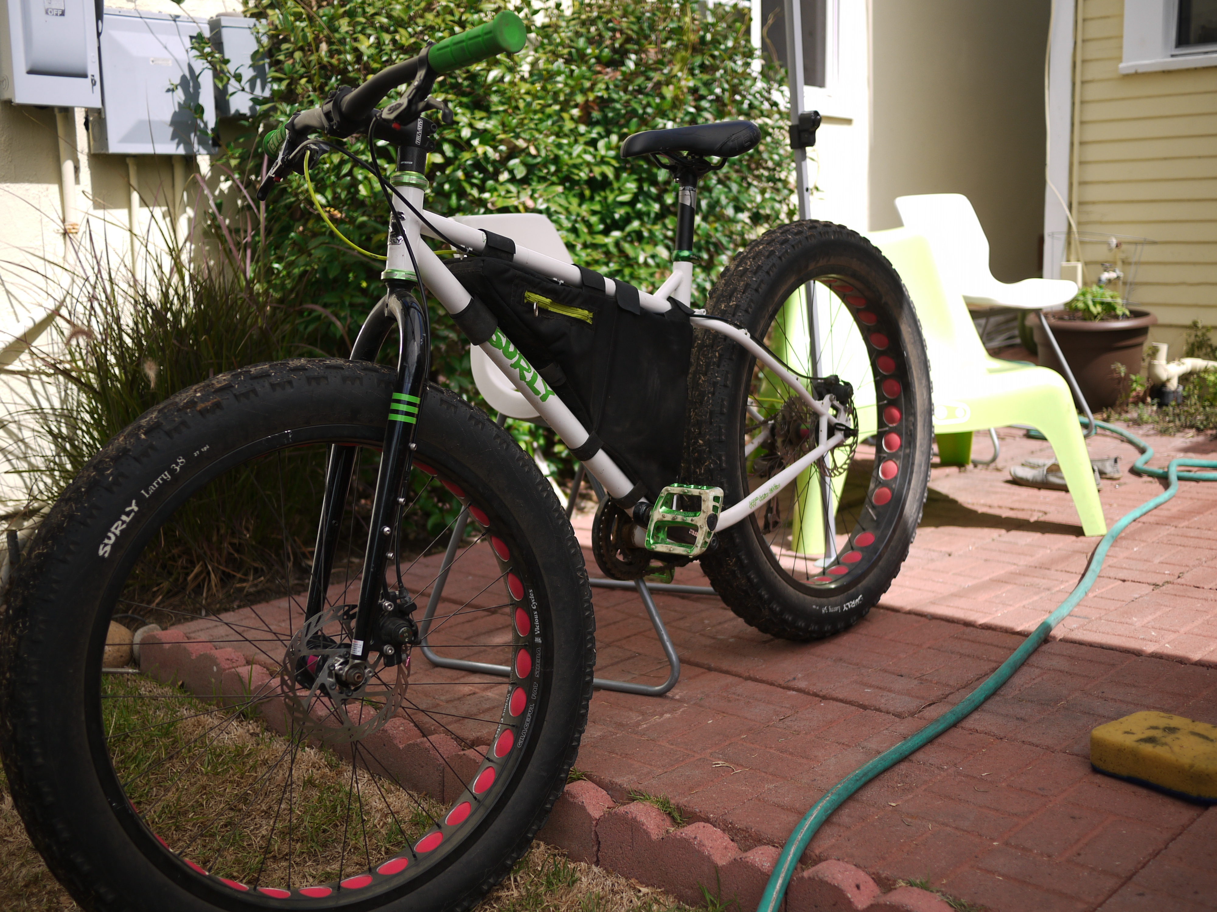 Today was actually spent on Cale’s bad-ass Pugsley fat bike, ripping it up on the local single track out here. Too much fun!!!