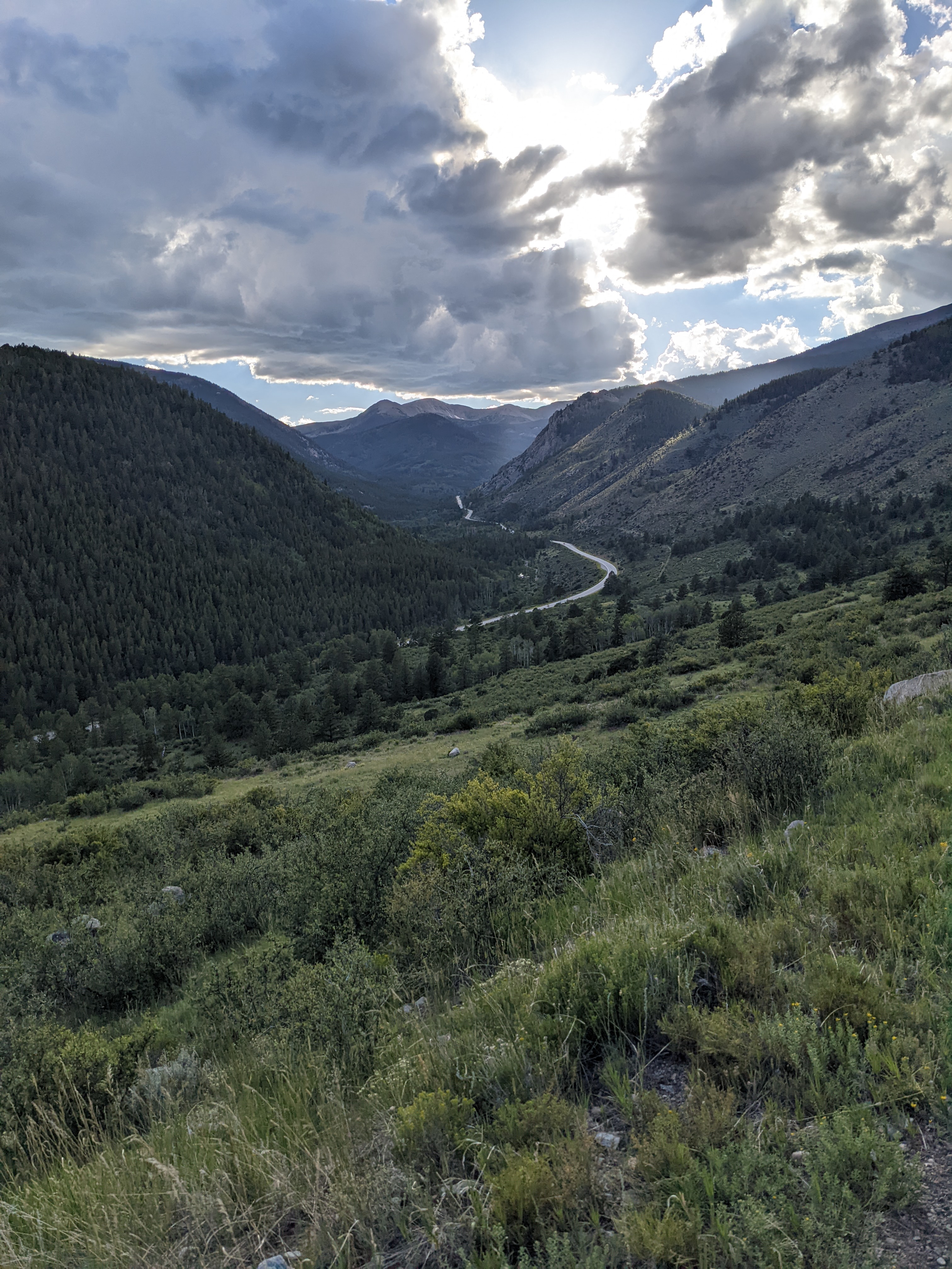 The sketchiest part of the day was between Searle and Kokomo pass, where I was caught in a rain and hail storm as 12,000′ and hurriedly tried to get through before I got zapped. Luckily it all worked well and before long I was pointing my bike downhill ready for an AMAZING descent.