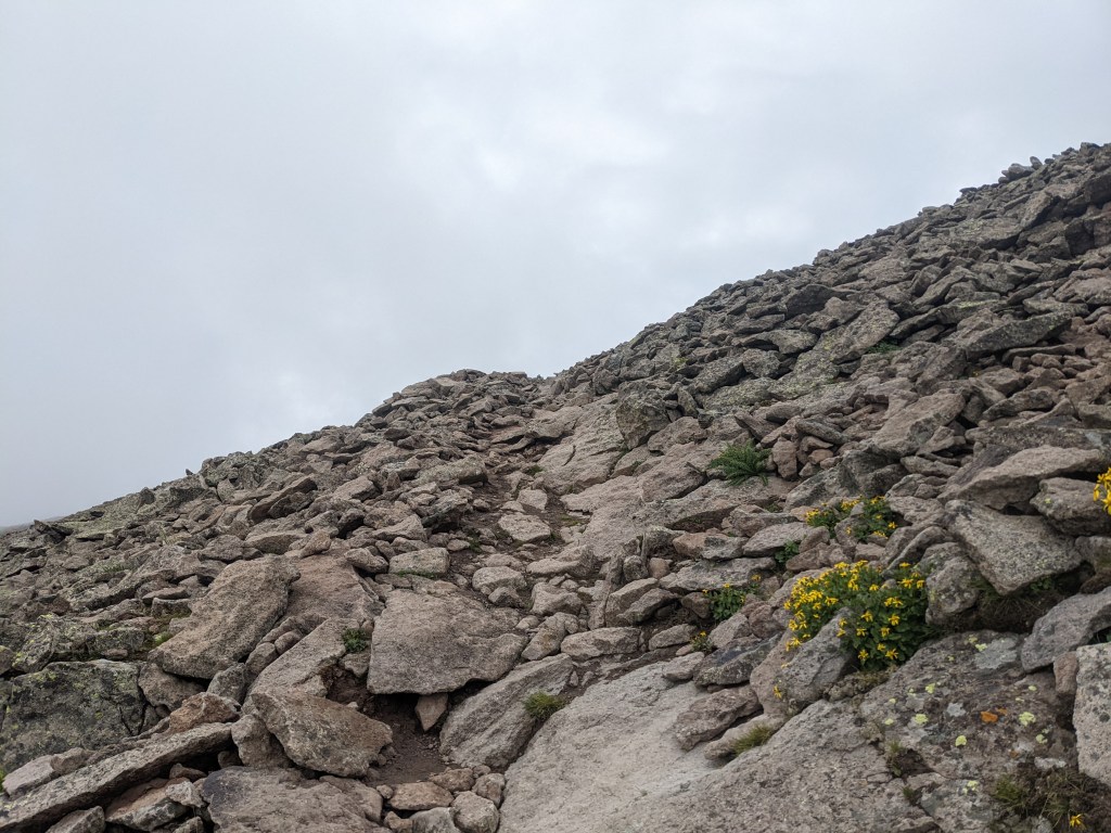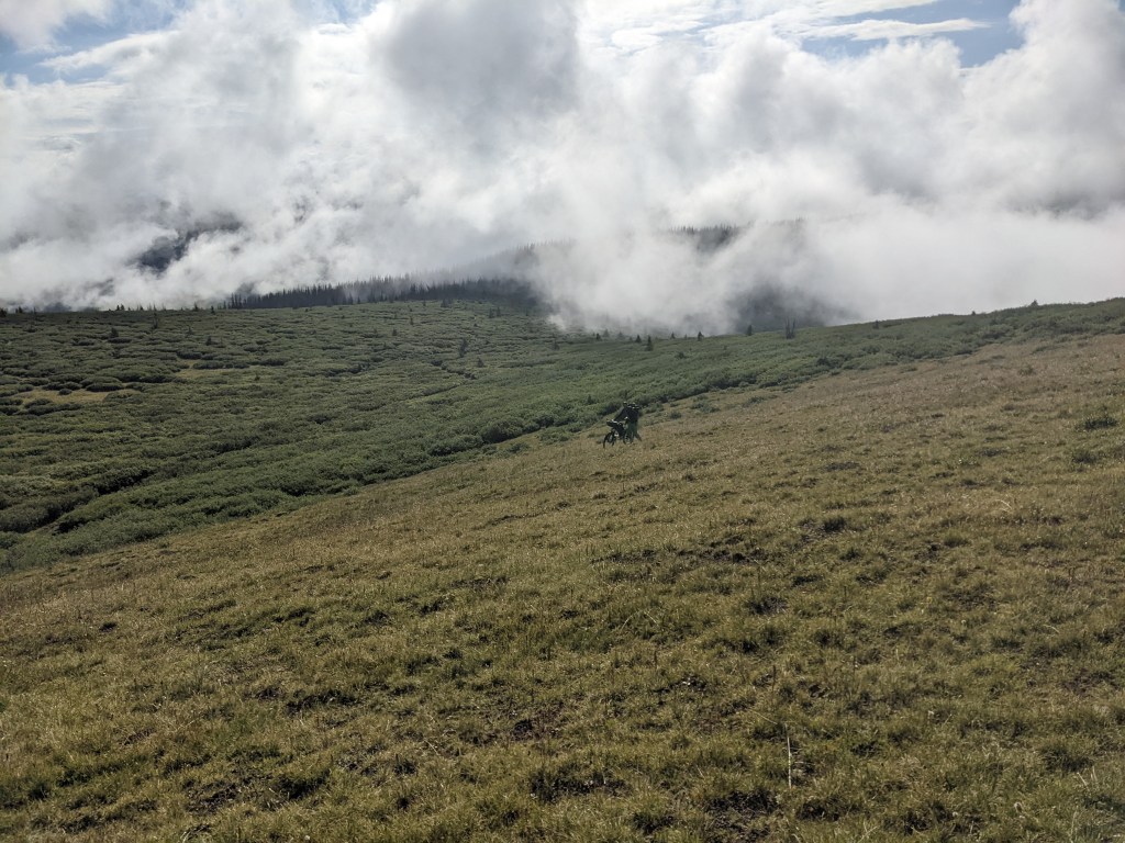 This would prove to be my final day on the trail, and one hell of a day spent battling COVID, exhaustion, elevation (12,000+’), rain, and relentless terrain. Honestly, minus the COVID, it was exactly the kind of knock-down-drag-out relentless experience I usually love. Not every day, of course. But there is something truly beautiful and zen-like about those days where you have to find the inner peace and hidden energy to stay upright, push on and maybe crack a smile. Sounds crazy, I know, but those who know, know…..